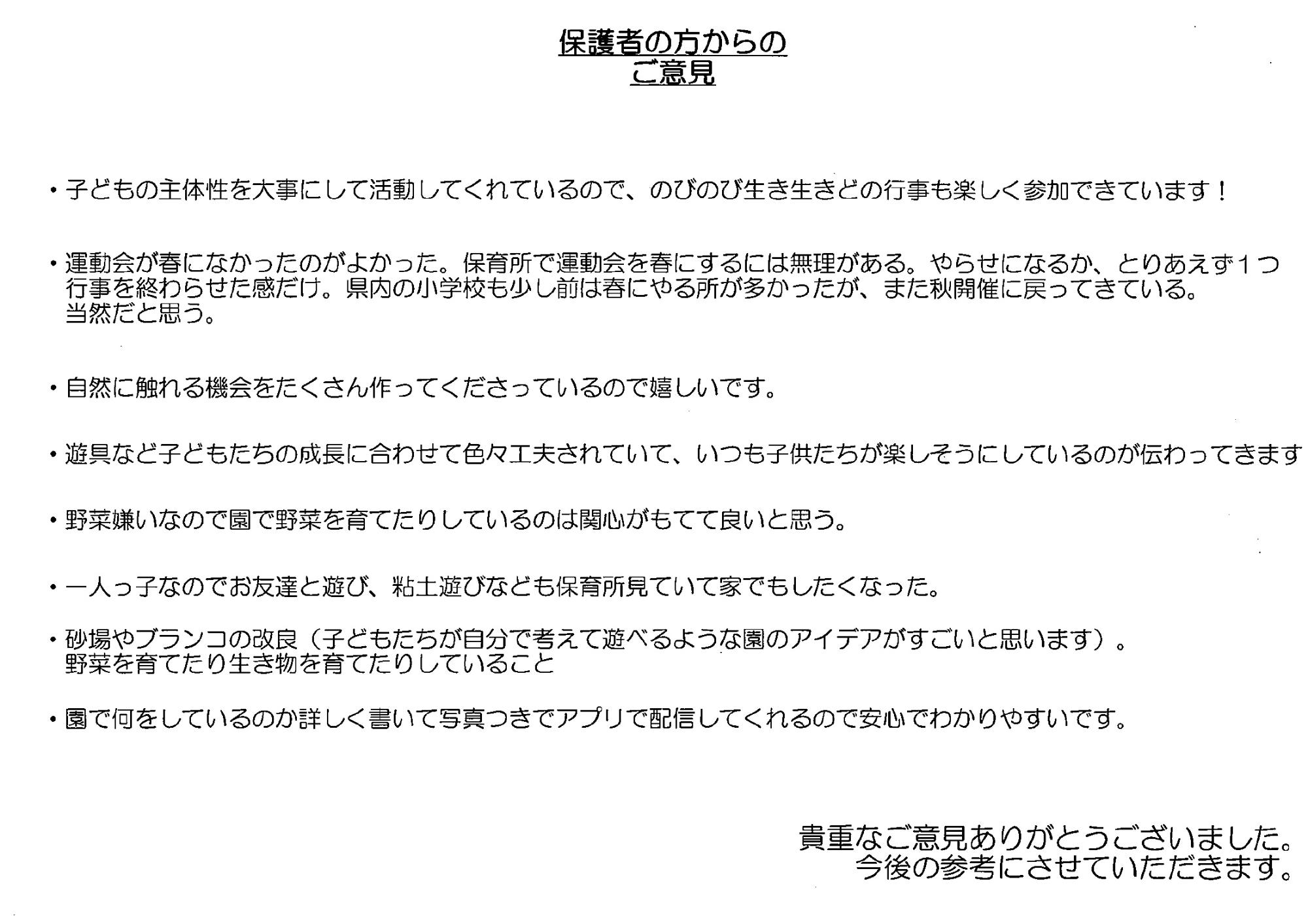 令和3年度 中黒瀬保育所 保護者アンケート結果