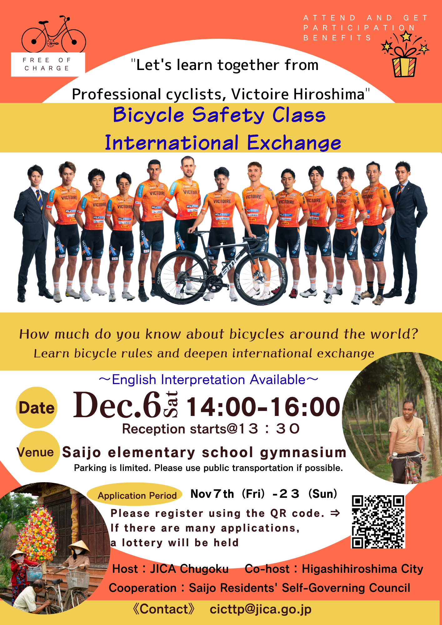 December 6, 2025 "Let's learn together from Professional cyclists, Victoire Hiroshima" Bicycle Safety Class International Exchange(自転車安全教室)