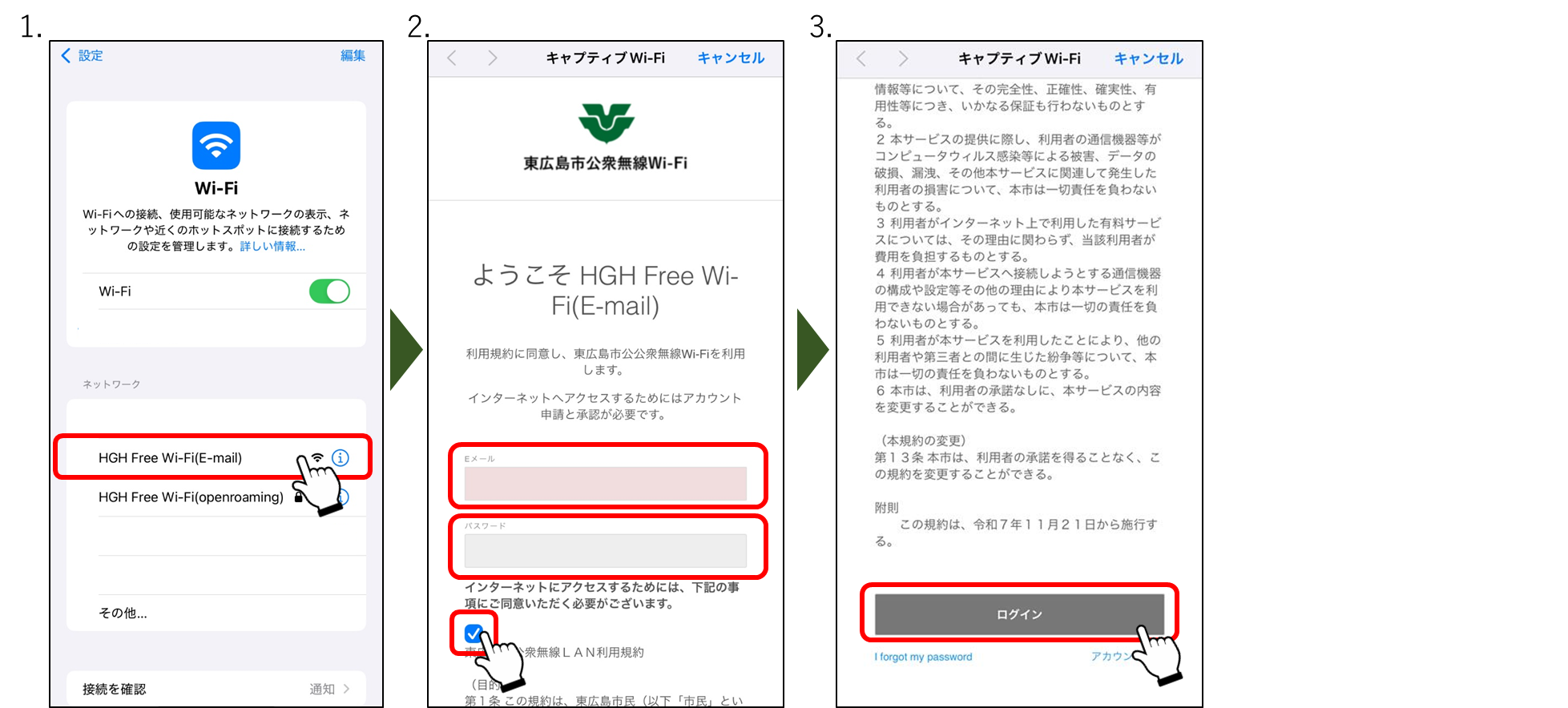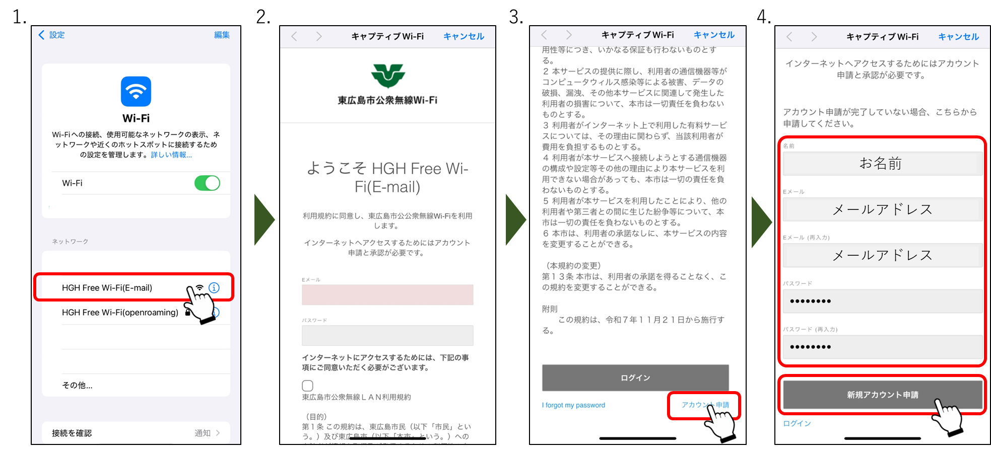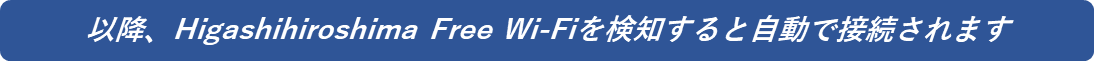 After this setup, your device will automatically connect when Higashihiroshima Free Wi-Fi is detected.