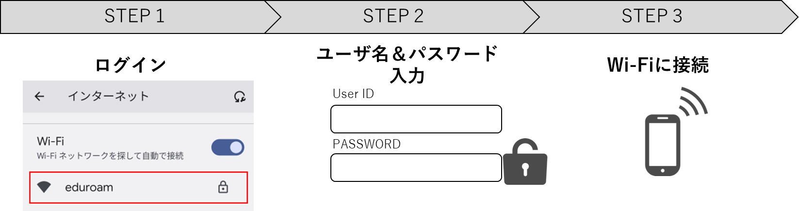 eduroam is a secure Wi-Fi service that allows university students to connect using their own university credentials (ID and password).