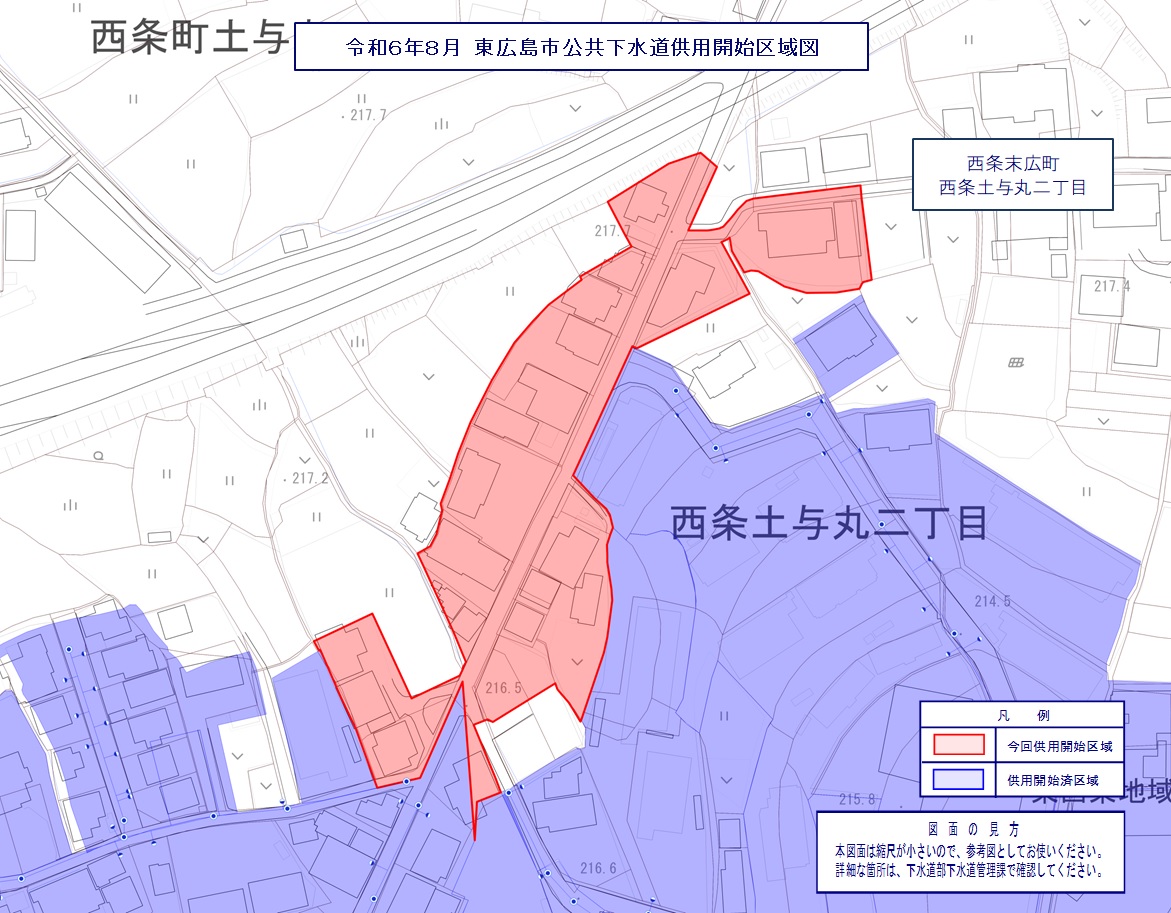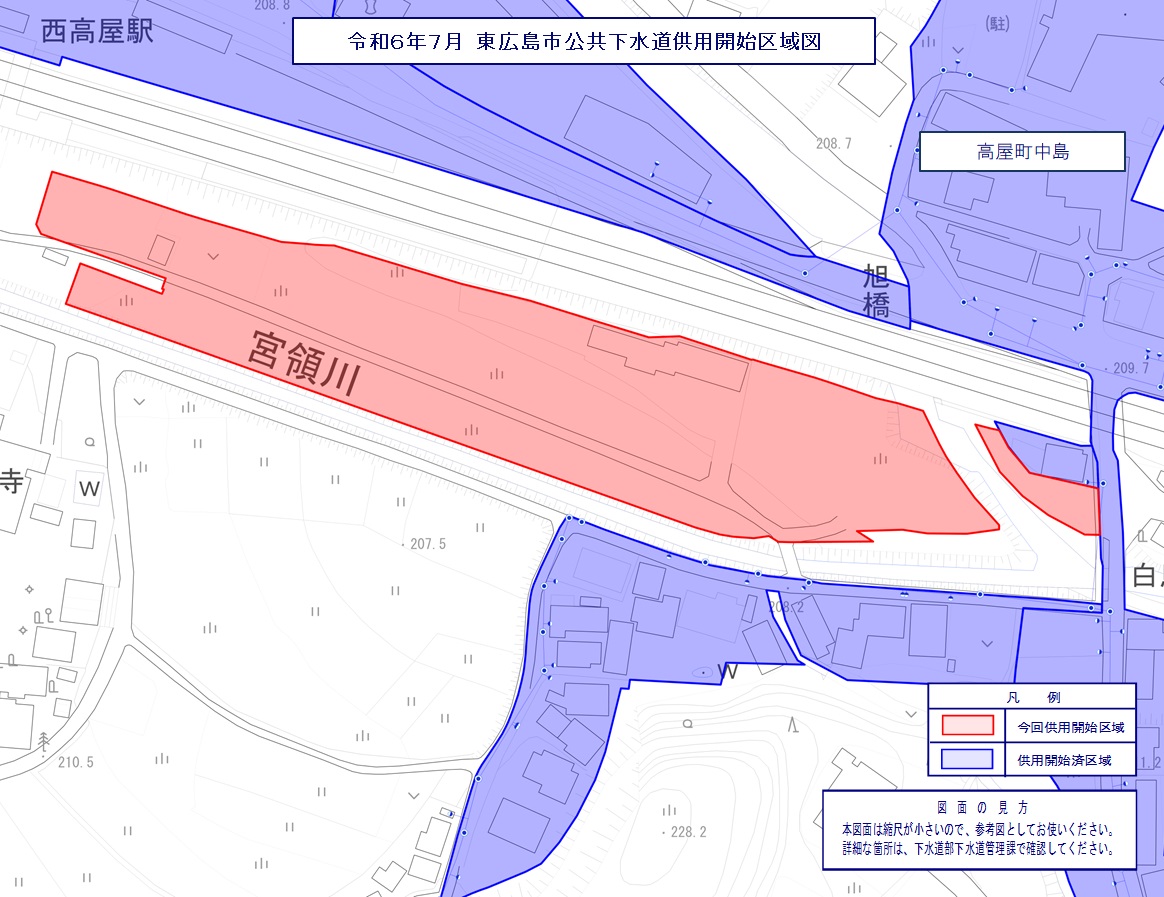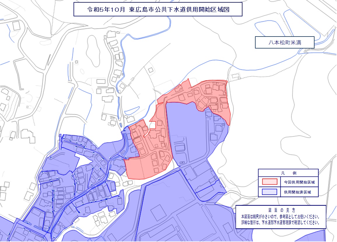 ※令和5年7月以降の供用開始区域をお知らせしています。これ以前の供用開始区域については、外部サイト「ひがしひろしまっぷ」から調べることができます。
