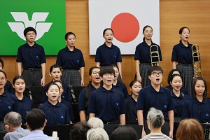 11月9日(土曜日)にフジグラン東広島で開催された一校一和文化学習発表に出演しました。3年生を中心とした選抜メンバーが、合唱「日本の歌『四季』」を披露しました。買い物に来ている方々が足を止めて生徒の歌声に聴き入っている様子がとても印象的で、天井まで響き渡る生徒の歌声は圧巻でした。これまでの中央中学校の伝統を受け継ごうとしている堂々とした生徒の姿がみられました。主催者の方にもとても喜んでいただきました。
