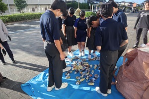 10月6日(月曜日)、10月のアルミ缶DAYを行いました。7時30分から保護者ボランティア3名の方と生活環境委員の2年生で缶をつぶして袋に集めました。10月に入って朝晩が涼しくなったとはいえ、日差しは依然として強く、缶をつぶしていると自然と汗が滴り落ちます。今月は約20kg集まり、ここまで着実に数字を伸ばしています。ただ、これからだんだん寒くなり、冷たい飲み物の消費が落ち込みます。年間目標200kgの達成に向けて、皆さんのご協力をお願いします。