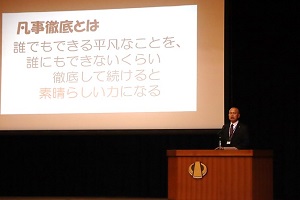 1月7日(火曜日)後期後半のスタートに際し、学校長が集会で次のように話しました。『今年は「巳年」、「巳年」は挑戦・再生の年と言われています。「今」という字に言葉を付け加えてみると、今さら・今から・今ならの3つの言葉ができます。皆さんは、どれを選択しますか?「今」という字に「心」を加えると「念」という字になります。一念(深く心に思うこと・一筋にその事を思うこと)で、「今さら」ではなく、「今から」「今なら」の気持ちで、今年も挑戦の年にしてほしいと思います。』