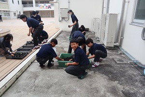 10月20日(月曜日)のお昼休憩の時間に、後期始業式での校長先生の呼びかけで、パンジーの苗をポットに植える作業に、全学年から延べ25名ほどの「リコリタ会員」が参加してくれました。このパンジーは卒業式の頃に最盛期を迎え、3年生の旅立ちを華やかに飾ってくれます。自分にできることで他人を笑顔にする、そんな生徒がたくさんいることをとてもうれしく思います。参加してくれた「リコリタ会員」の皆さん、ありがとうございました。