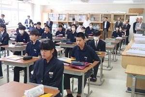11月14日(木曜日)第2回進路説明会を開催しました。進路指導主事から公立高校・私立高校・国立学校の入試について、受検手続きやスケジュール、出願方法等について説明しました。公立高校の出願について動画も視聴し、生徒は緊張感をもって聞いていました。その姿は、自分の進路を決定し、その目標に向かって努力していかなければならないことを痛感しているように感じました。いよいよ、3年生は受験に向けて団体戦で挑んでいきます。