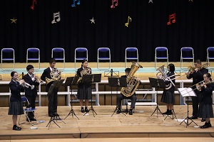 1月26日(日曜日)第9回寺西楽しい音楽祭が開催され、吹奏楽部が出場しました。地域の小中学校・高校・地域センターのグループの活動が発表され、吹奏楽部は「オーメンズ・オブ・ラブ」「美女と野獣」「青と夏」の三曲を演奏しました。1・2年生の演奏を地域の方々に披露でき、多くの方々に喜んでいただきました。司会者が「中央中学校に入学したら吹奏楽部に入部したい人いますか?」と会場の小学生に質問され、手を挙げてくれる子どもたちがたくさんいました。小学生が憧れる中学生になってほしいと思います。