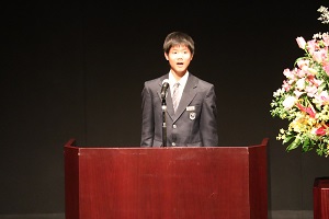 1月24日(土曜日)、令和7年度「HIGASHIHIROSHIMA『少年の主張』」がくらら小ホールで催されました。これは、東広島市が中学生の表現力を育み、お互いの考えを学び合う機会として毎年実施している取組です。中央中学校からは2年生の島崎雅也くんが参加しました。島崎くんは「挨拶」について、小学校で登校班の班長になったときの体験を通して、自分から挨拶をすることで人々とつながる喜びを述べしました。最後に「挨拶でみんなを明るくし、地域を盛り上げていきたい。」と結びました。大舞台で緊張もありましたが、自分の思いをしっかりと伝えることができました。この経験を今後の人生に生かしていってください。