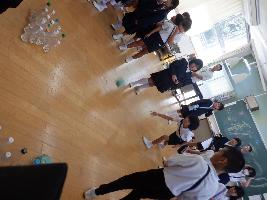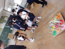 10月9日(木曜日)4校時、小学校児童会の企画「秋まつり」を行いました。全校児童が縦割りグループに分かれ、ペットボトルボーリングや千本びきなどのゲームをしました。前期のしめくくりに楽しい時間をすごしました。