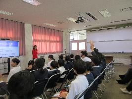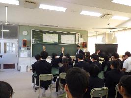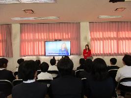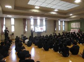 学校薬剤師の金好康隆先生に来ていただき、薬物乱用防止についてお話をしていただいました。大麻や覚せい剤の危険性、ゾンビたばこやオーバードーズの問題など、知っておくべき内容のお話を丁寧にわかりやすくしていただきました。あまり身近な問題ととらえていなかった生徒も、将来に向けて考えを深めていました。薬は上手に使わないといけないこともわかりました。