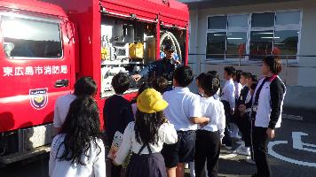 広島県は平成30年7月の豪雨災害を受けて、「みんなで減災」の取組が県内一斉に始まっています。本校も全校児童生徒で地震・火災避難訓練を実施し、防災意識の高揚を図りました。東広島市消防署の方に来ていただき、避難の仕方についてもアドバイスをいただきました。この日の避難訓練を「ただの行事」で終わらせず、「自分の命を守る練習だった」「みんなで助け合うための練習だった」と心に留めておくように伝えました。