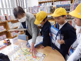小学校2年生が町探検に出かけました。2週間前にも1度訪問してお話を聞いており、教えてほしいことを考えて質問に答えてもらうために再度でかけました。図書館や道の駅、生活デザイン・工学研究所など、町内で働いておられる皆さんがとても親切に児童に説明をしてくださいました。
