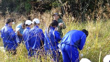 探究ミコシギクグループを中心に中学校全員が広大の塩路先生、学生さんと一緒に取り組みました。みんなで守っているミコシギクの白いかわいらしい花を観賞しながら、通路や周辺の枝、草の撤去、踏み荒らし防止の足場板の設置を行いました。絶滅が危惧されているミコシギク。初めて自生地の足を運んだ1年生。自生地の生態やミコシギクの観察等も学びました。