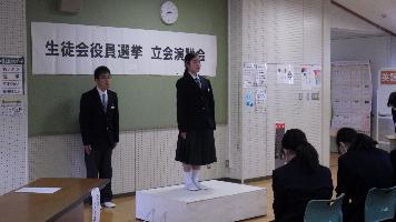 次年度の生徒会役員の選挙を行いました。会長・副会長・書記に各1名が立候補し、生徒の投票で承認されました。生徒会は、行事を支え、学校生活の課題を見つけ、改善し、より過ごしやすい学校をつくっていく、いわば“学校の未来を動かすチーム”です。新たなリーダーのもと、学校に新しい風が吹くことを期待しています。