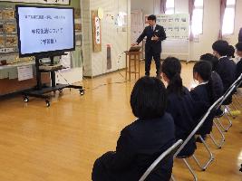東広島市法人会の税理士の方を講師に招き、小学校6年生が税の学習を行いました。税金は何に使われているのか、映像を見ながら考えていきました。税金がなくなると、自分たちの暮らしはどうなるのかを考えました。税金で自分たちが暮らしやすくなっていることをたくさん知ることができました。