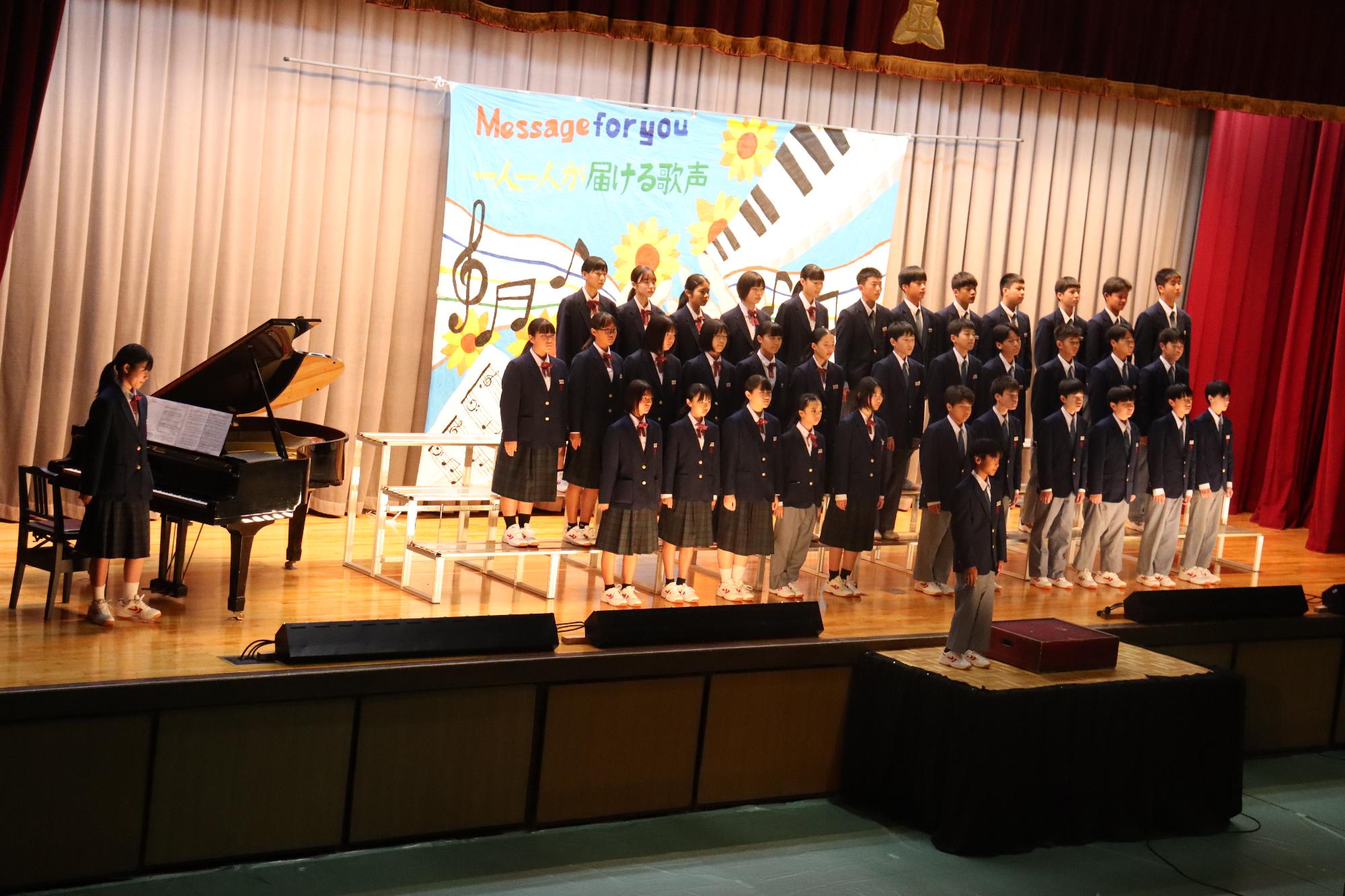 10月25日に文化祭を開催しました。どのクラスも一生懸命歌い、美しいハーモニーを響かせていました。展示・ステージ発表では、文化部を中心に素晴らしい作品や演奏を披露してくれました。