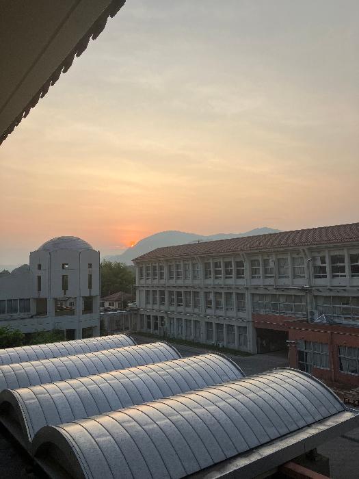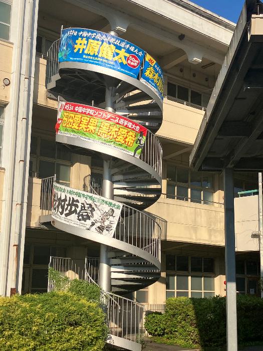 5月31日に行われる体育大会に向けて情報を発信していきます。今回は横断幕についてです。家庭科部が布を合わせ縫い、総合芸術部が絵を描いた体育大会の横断幕が完成しました。現在職員室前に掲示しています。体育大会当日も体育館前に掲示予定ですので、ぜひご覧ください。
