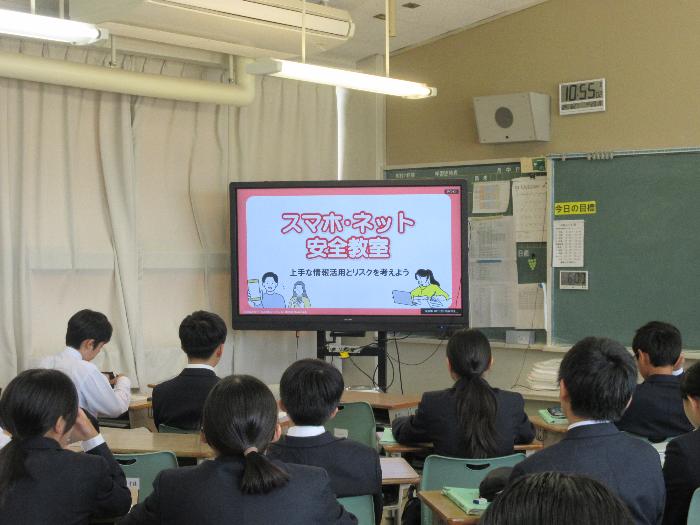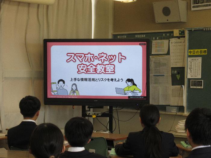 10月20日(月曜日)docomoによるスマホ・ネット安全教室が行われ、SNSや動画をアップするときのリスクについて、身近な例を挙げながらお話しいただきました。インターネットに公開した情報は、たとえ一瞬でも拡散してしまうことや、写真を友達がインターネット上に公開するときに考えておくべきことなど具体的に教えていただきながら、インターネットの特殊性などについても教えていただきました。これを基に、適切なスマホ・ネットの使用方法を考えていきましょう。