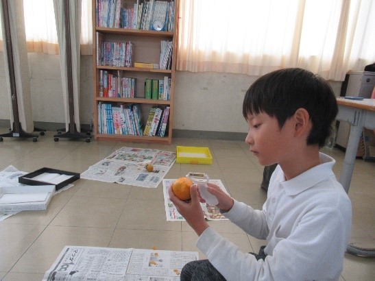 1年数カ月間,さなぎで過ごしたアゲハ蝶が,6年生の卒業を祝うように羽化しました。教室で飼うのに,「木切れがあったらいいんじゃない?」と休憩時間に自分から木切れを集めて来たり,「花を入れたらいいんじゃない?」という提案で,みんなで土付きの花を畑に取りに行ったりしました。ホトケノザの花がたくさん咲いているので教室に持って帰りました。その時,「キンカンを入れてあげよう」と何個かキンカンの実を持って帰っていました。子供達の優しさに,私も心が和みました。