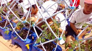 21日には、各クラスの代表者4名ずつが、さらにオクラときゅうりを植えました。