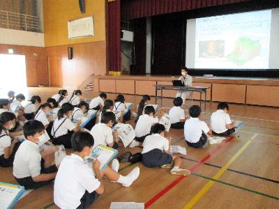 6月21日(水曜日)に総合的な学習の時間「安全なまちづくり」の学習で,広島県西部建設事務所東広島支所の方から,土砂災害について話を聞きました。子どもたちは,土石流が自動車ぐらいの速さだということや,広島県の危険な場所が北海道よりも多いということに驚いていました。また,模型を使って,土砂災害を再現することで,砂防ダムの効果を実感することができました。「土砂災害について分かったことを伝えたい。」「災害から命を守るために何ができるか調べたい。」と感想をもっていました。