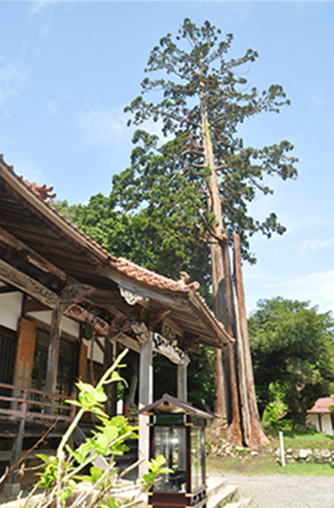 - 7日7日の落雷で福成寺の夫婦杉の片方一本がこげ、一部を伐採