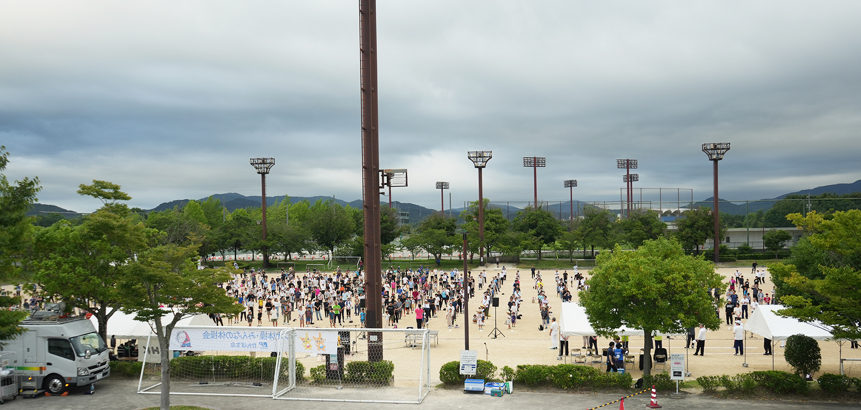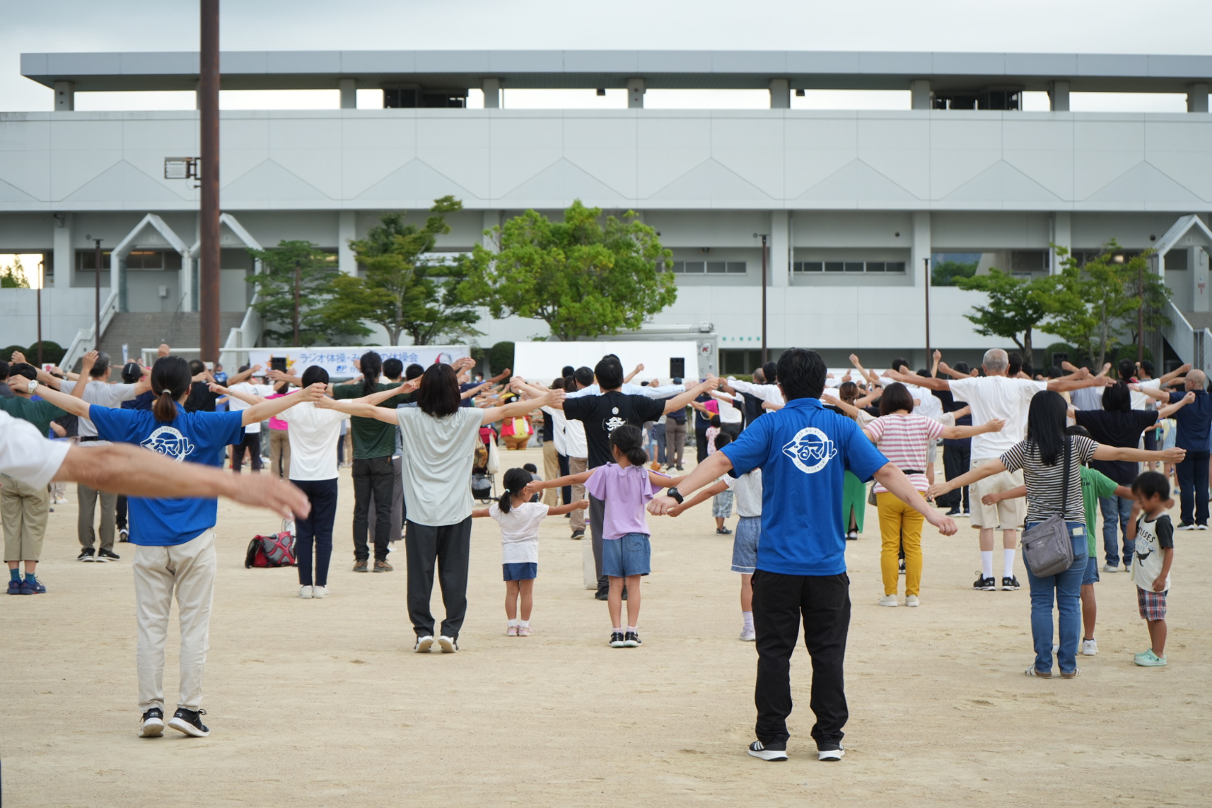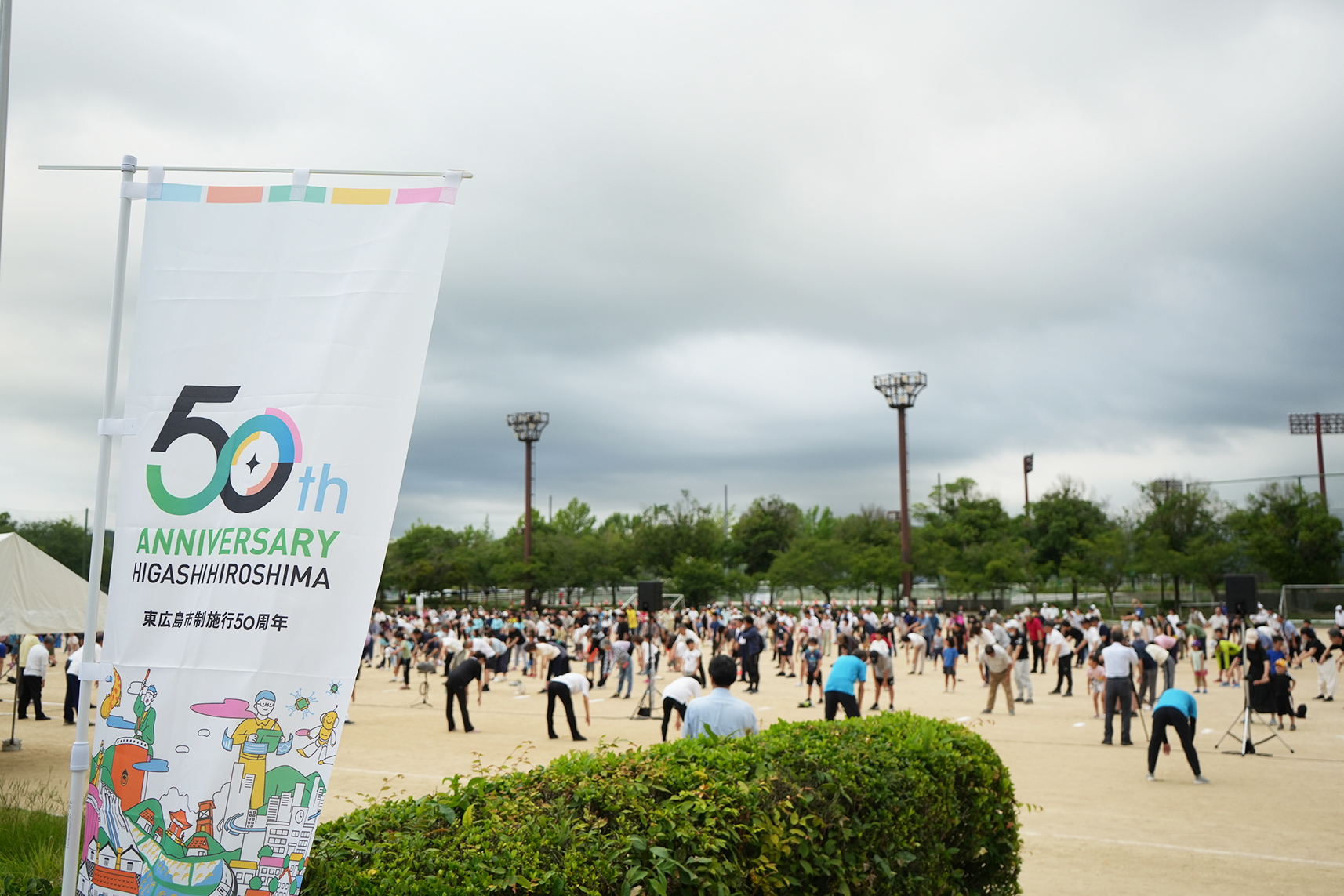 参加者がたくさん集まっていて、東広島市も50周年を迎えたということで盛り上がっていると感じました。体操指導の先生のおかげもあり、参加者全員の一体感があってよかったですね。