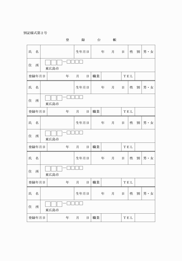 第3条 候補者の登録を受けようとする者は、別記様式第1号による東広島市統計調査員候補者登録カードに必要な事項を記載してその旨を市長に申し出なければならない。
