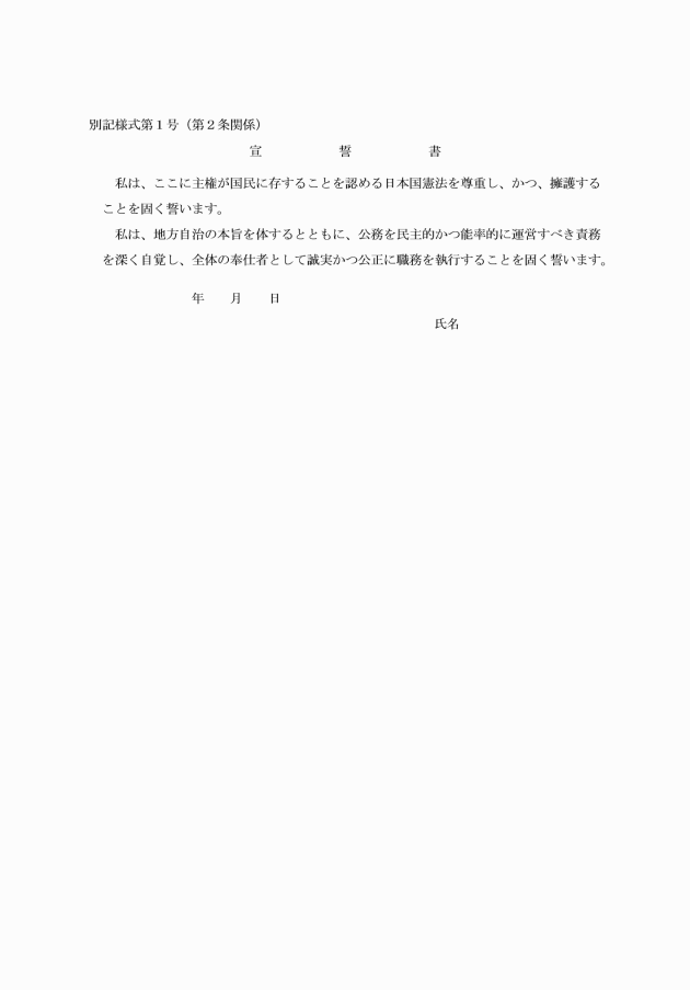 第1条 この条例は、地方公務員法(昭和25年法律第261号)第31条の規定に基づき、職員の服務の宣誓について必要な事項を定めるものとする。