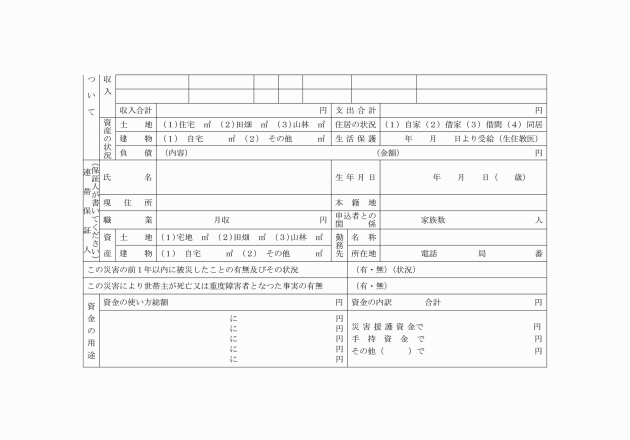 第6条 災害援護資金(以下「資金」という。)の貸付けを受けようとする者は、当該災害による被害を受けた日の属する月の翌月1日から起算して3月を経過する日までに、災害援護資金借入申込書(別記様式第2号)に次に掲げる書類を添えて、市長に提出しなければならない。