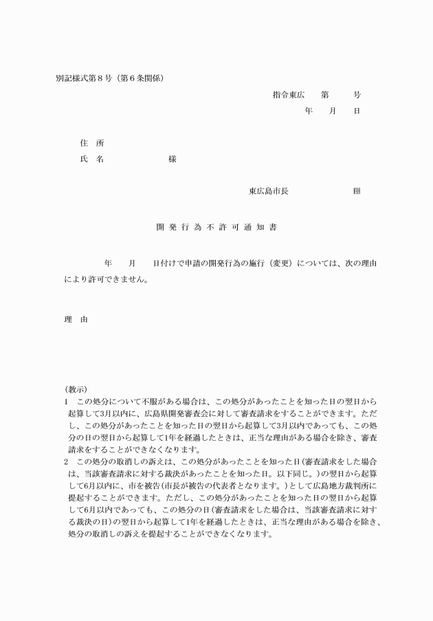 省令第32条の開発行為に関する工事の廃止の届出書 | 1部 |