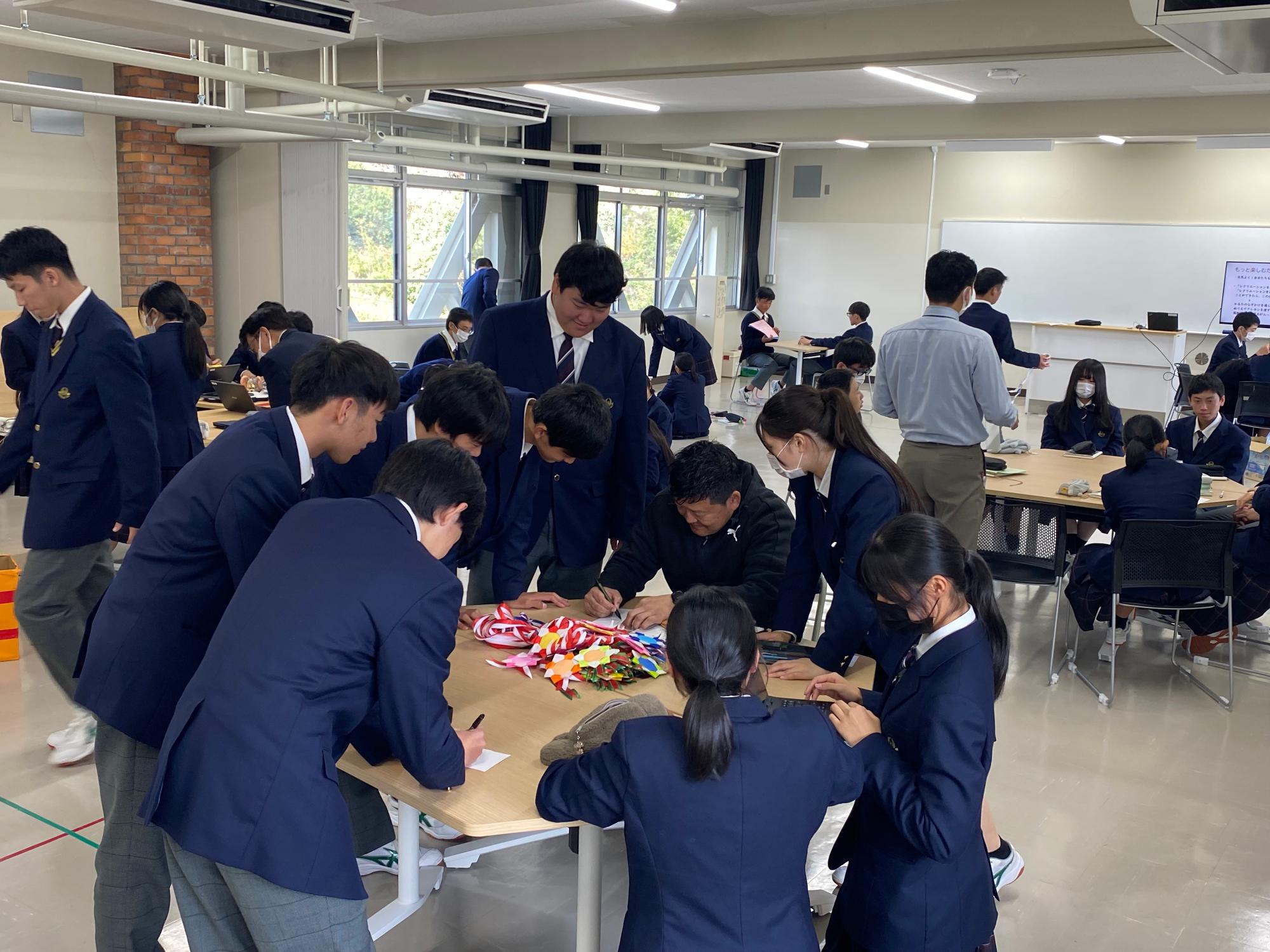 内容:黒瀬高校で開催予定の福祉ウォークがついに1週間後となりました。今日はまず、黒瀬みらい会議会員に向けて行ったリハーサルの振り返りを行い、先生からは、元気よく自分たちも楽しむこと、ゲストへ物品等を手渡しする際にも積極的にコミュニケーションを図ることなど、黒瀬みらい会議会員からのアドバイスや意見についての話がありました。その後、リハーサルで出た意見を踏まえて、6チームはそれぞれ、準備物の改良等の作業やレクリエーションのルール等の検討を行いました。リハーサルではさまざまな意見が出ましたが、レクリエーションがさらに良いものになり、ゲストも生徒さんたちも共に楽しめる1日になることを期待しています。