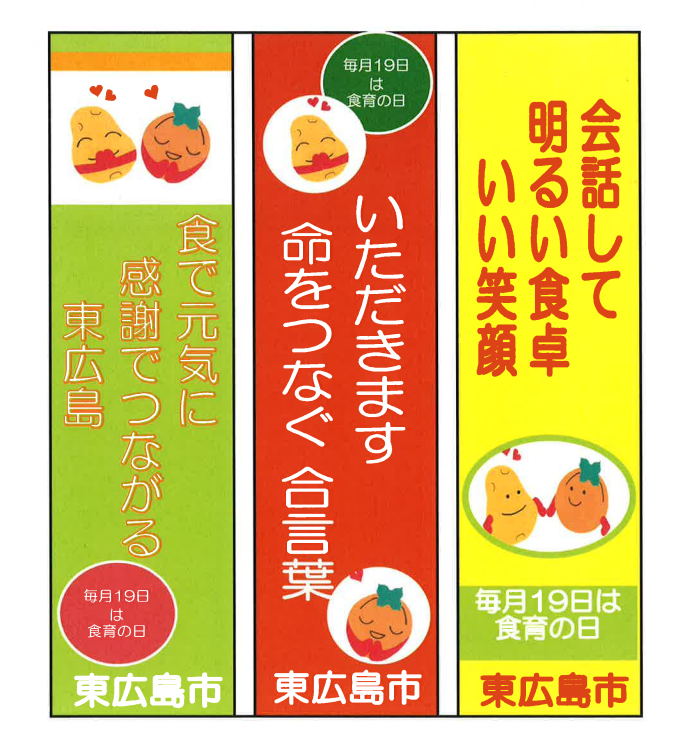本市では、毎月19日(19日が閉庁日の場合はその直前の平日)に、東広島市役所本庁本館内にて、「食育の日」を周知するための取組みを実施しています。