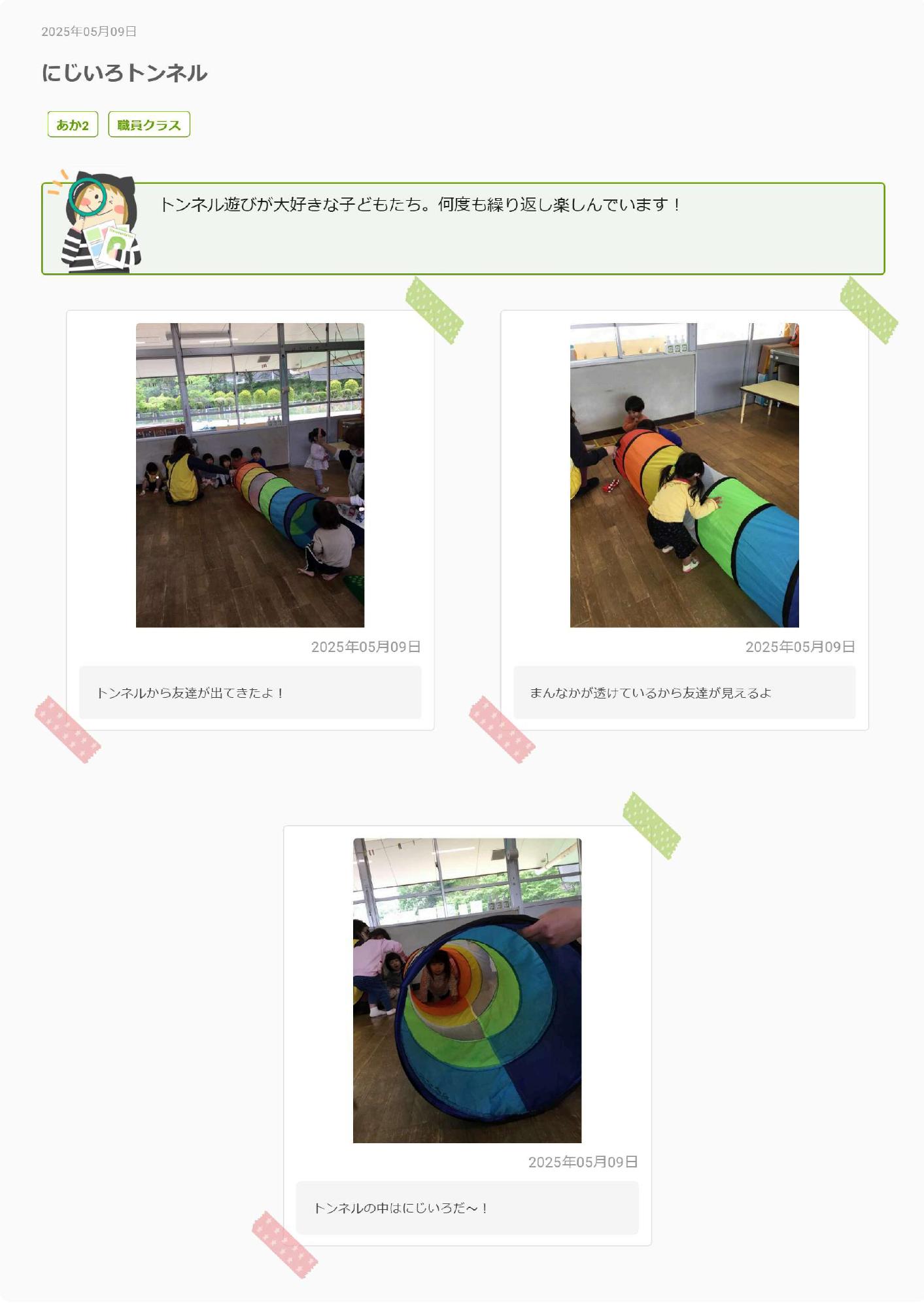 📷赤1組 ピョンピョン、トンネル楽しいね!