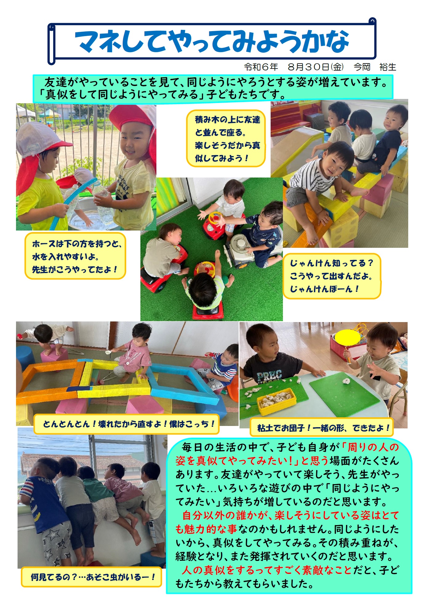ひよこ組(1~2歳児)🐤 Tweet 更新日:2025年11月12日 令和7年度 子どもの姿 10月の子どもの姿 9月の子どもの姿 8月の子どもの姿 7月の子どもの姿 6月の子どもの姿 5月の子どもの姿 4月の子どもの姿 令和6年度 子どもの姿 3月の子どもの姿 2月の子どもの姿 1月の子どもの姿 12月の子どもの姿 11月の子どもの姿 10月の子どもの姿 9月の子どもの姿 8月の子どもの姿 7月の子どもの姿 6月の子どもの姿 5月の子どもの姿 4月の子どもの姿