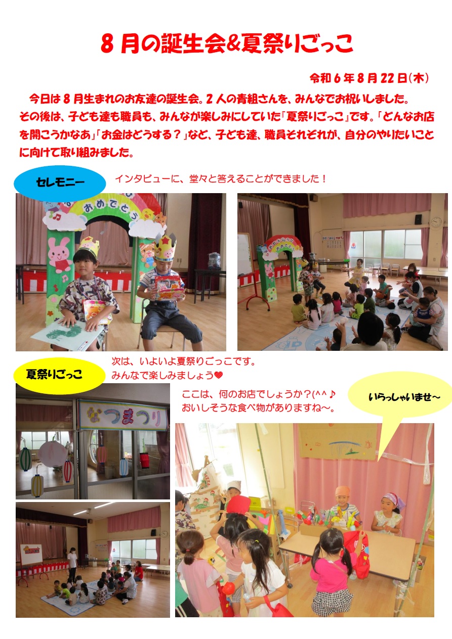 8月の誕生会&夏祭りごっこ🎈