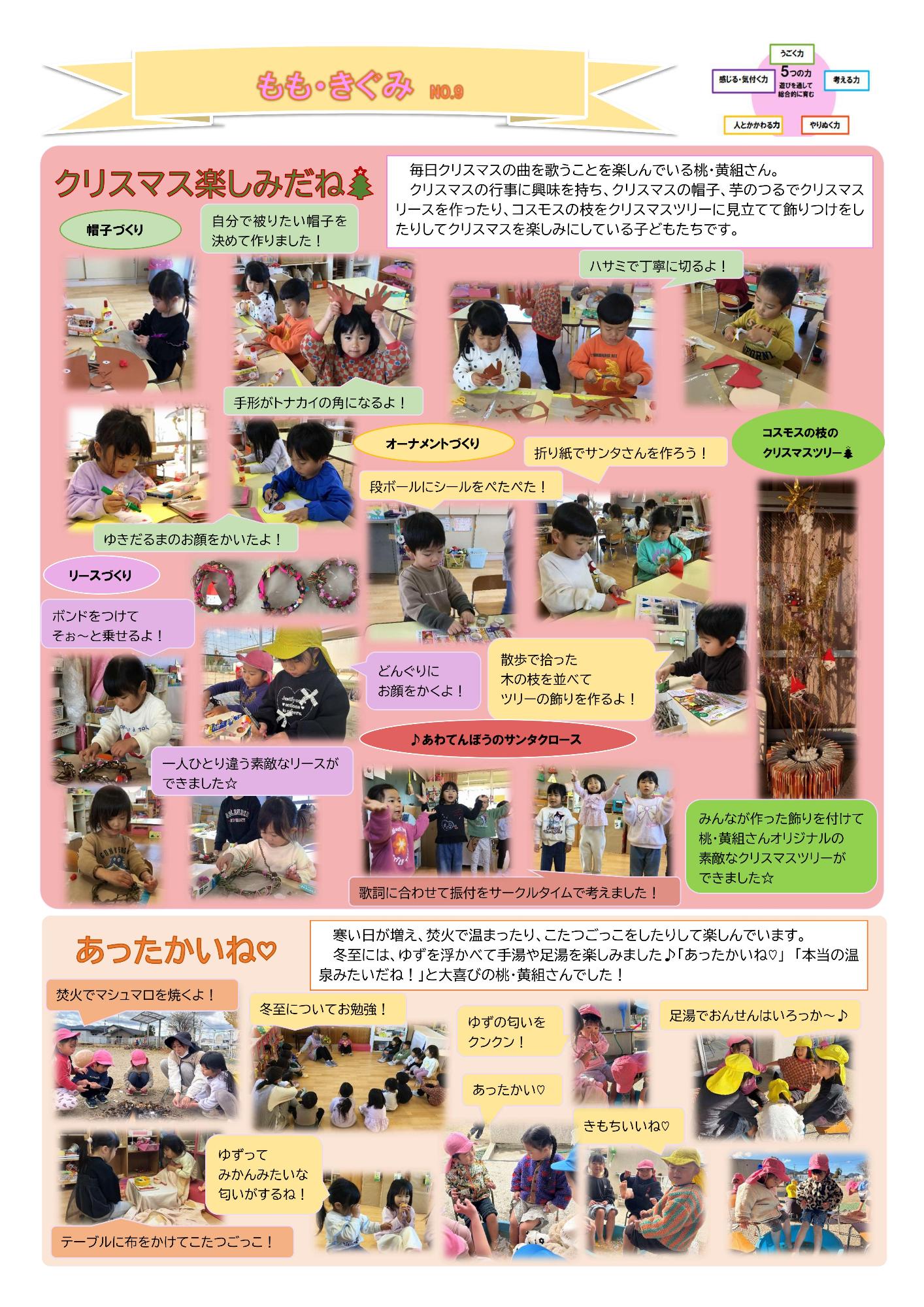 桃組(3歳児)・黄組(4歳児) Tweet 更新日:2025年12月24日 12月の子どもの姿 11月の子どもの姿 10月の子どもの姿 9月の子どもの姿 8月の子どもの姿 7月の子どもの姿 6月の子どもの姿 5月の子どもの姿 4月の子どもの姿