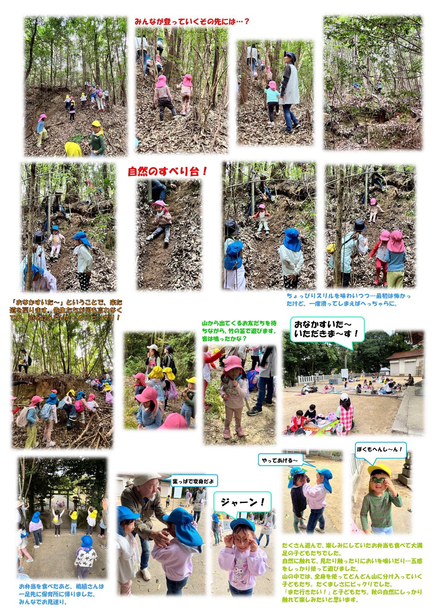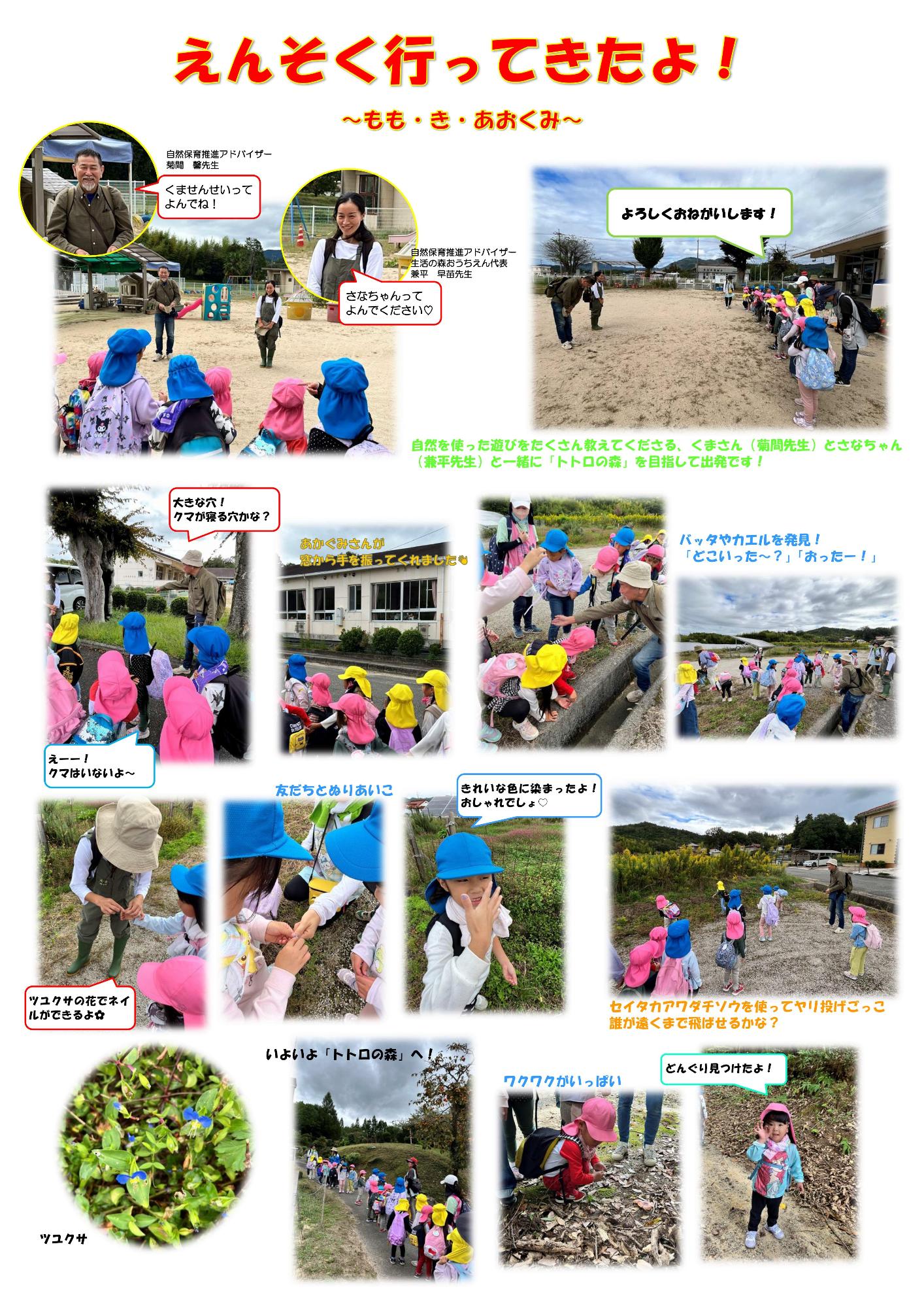 全クラス Tweet 更新日:2025年10月16日 秋の遠足~トトロの森で自然遊びを楽しもう~ 秋の遠足1 秋の遠足2 秋の遠足3 10月の誕生会 9月の誕生会 保育参観日の様子 8月の誕生会&夏まつりごっこ🍉 7月の誕生会🍰 6月の誕生会🍰 5月の誕生会🍰 春の遠足🌼 4月の誕生会🍰 入所・進級を祝う会🌸