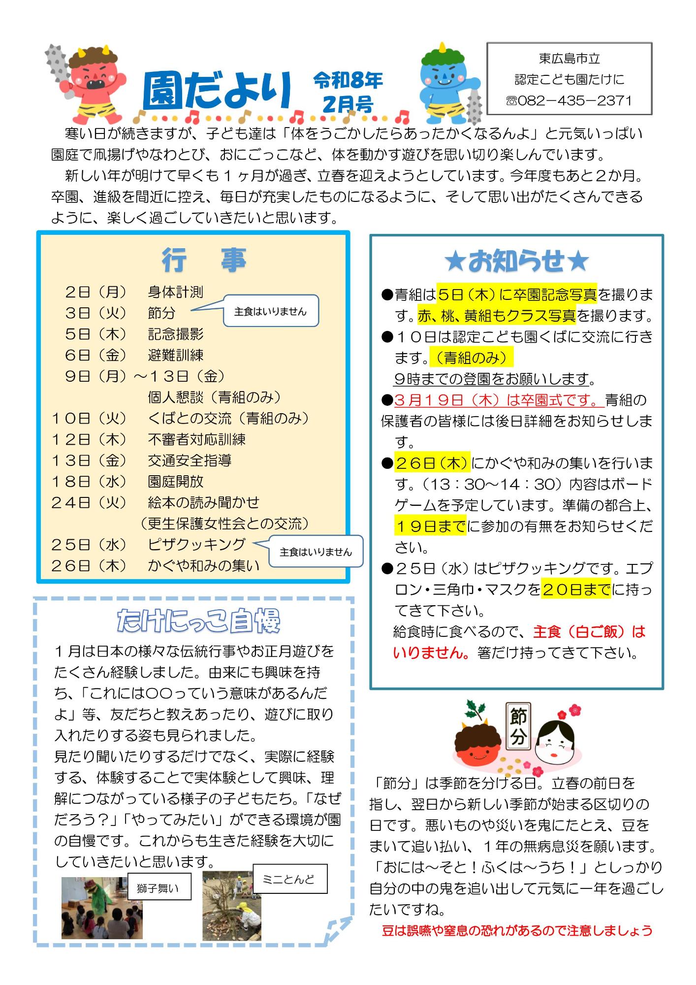 園だより Tweet 更新日:2026年02月02日 2月 1月 12月 11月 10月 9月 8月 7月 6月 5月 2025(R7)年4月 3月 2月 1月 12月 11月 10月 9月 8月 7月 6月 5月 2024(R6)年 4月 3月 2月 1月 12月 11月 10月 9月 8月 7月 6月 5月