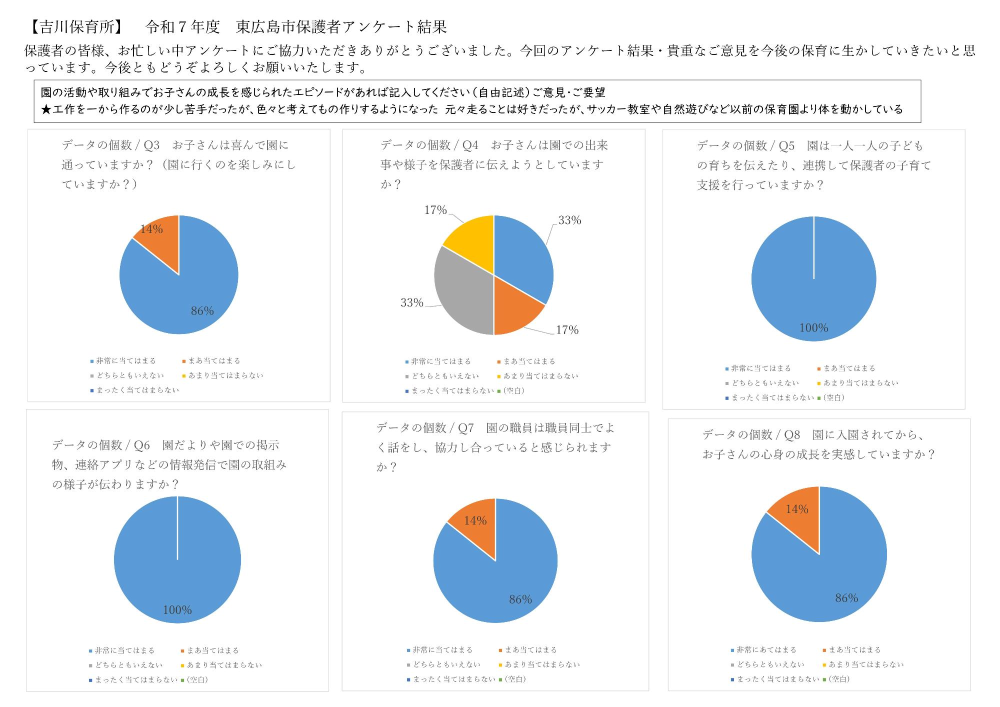 保護者の皆様、お忙しい中アンケートにご協力いただきありがとうございました。今回のアンケート結果、貴重なご意見を今後の保育に活かしていきたいと思います。今後ともどうぞよろしくお願いいたします。