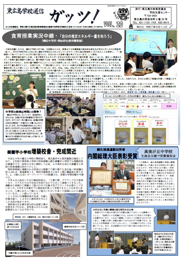 「東広島学校通信 ガッツ!」Vol.20(2025年9月10日発行)