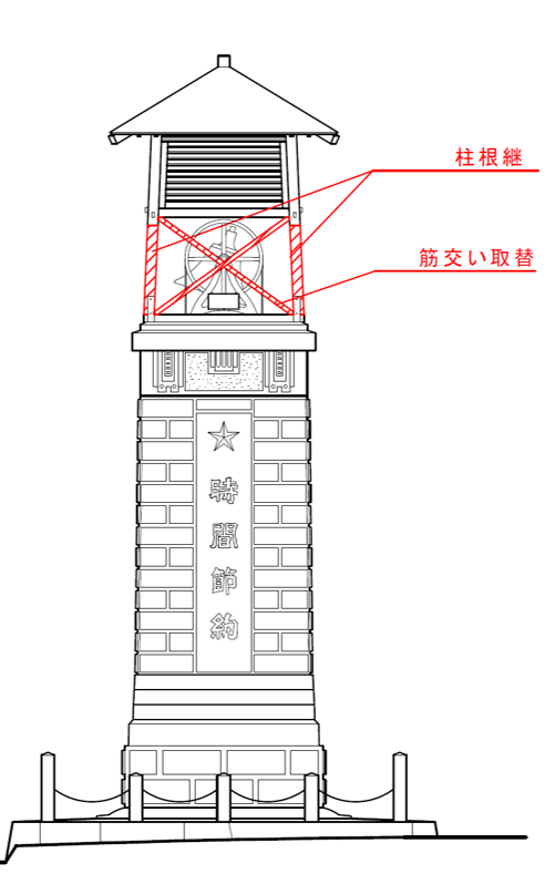 工事期間中は、仮設足場の設置により時報塔がご覧いただけなくなります。