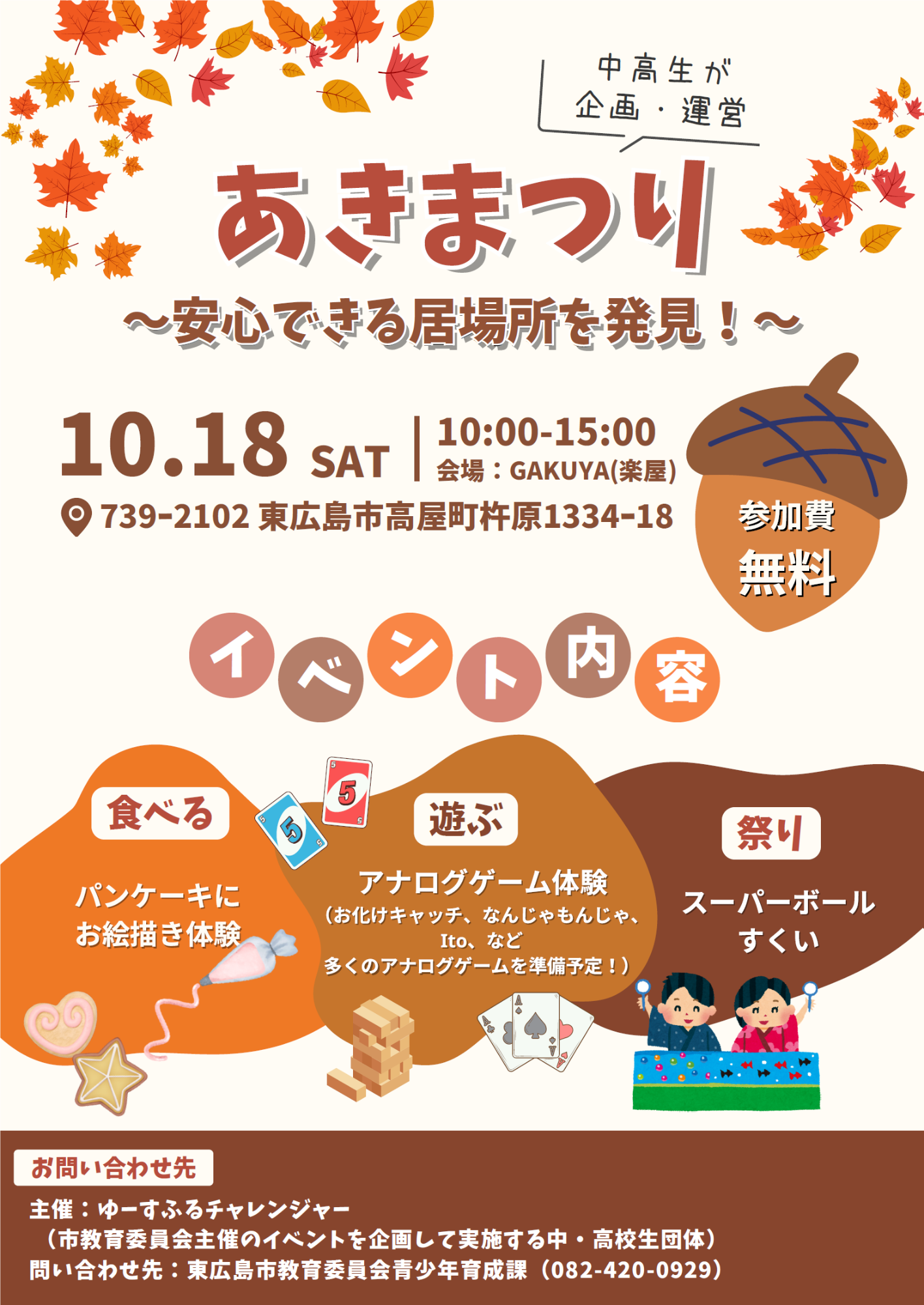 ゆーすふるチャレンジャー主催で「あきまつり」を開催します!🌰🍂