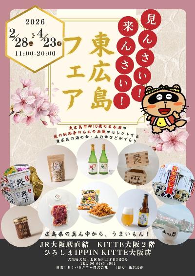 広島県の逸品を取り揃えるセレクトショップ「ひろしまIPPIN KITTE大阪店」で、東広島の商品をギュギュっと集めた物産展「見んさい!来んさい!東広島フェア」を開催します。