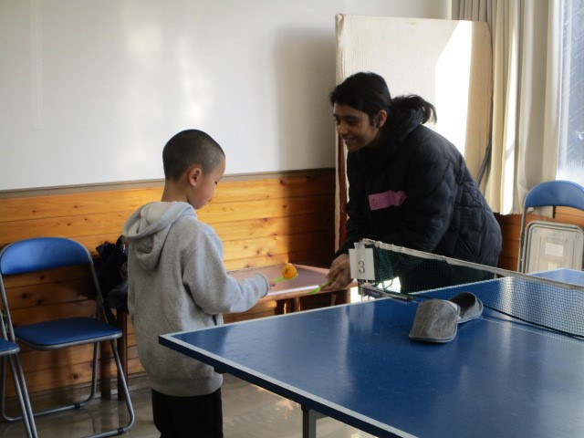 外国籍の方へ、スリッパ卓球という日本ならではの文化を紹介するとともに、日本人と一緒にラリーを続けることにより、日本人の「相手を思いやる心」を感じていただけたのではないかと思います。また、日本人には、外国籍の方とプレーしたり、お話しをすることで、「言葉の壁」を乗り越え、またいろんな外国のお菓子を食べることで「文化の壁」をちょっと乗り越えることができたのではないかと思います。ドリアンのお菓子は好き嫌いがハッキリと別れ、お互いのお菓子文化の話題に盛り上がっていました。 |