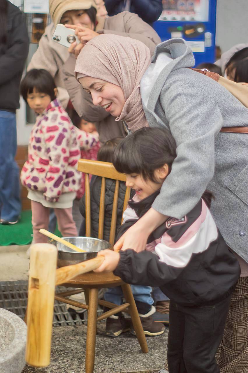 海外にも餅自体は広まっていますが、昔ながらの杵つきを経験する機会は限られています。また、地元を離れて暮らす日本の大学生や、小さな親子連れなど若い世代にとっても貴重であり、餅つきのノウハウを持つ地元住民に協力してもらうことで、よい交流の場が作れると思い実施しました。餅つきという日本文化を、多文化及び多世代で共有できました。 |