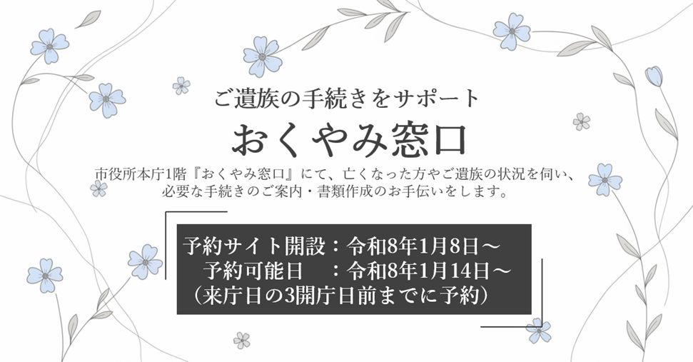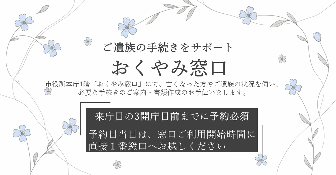 ※おくやみ窓口を利用せず、担当課の窓口で直接手続きすることもできます。なお支所・出張所には『おくやみ窓口』は設置しておりません。