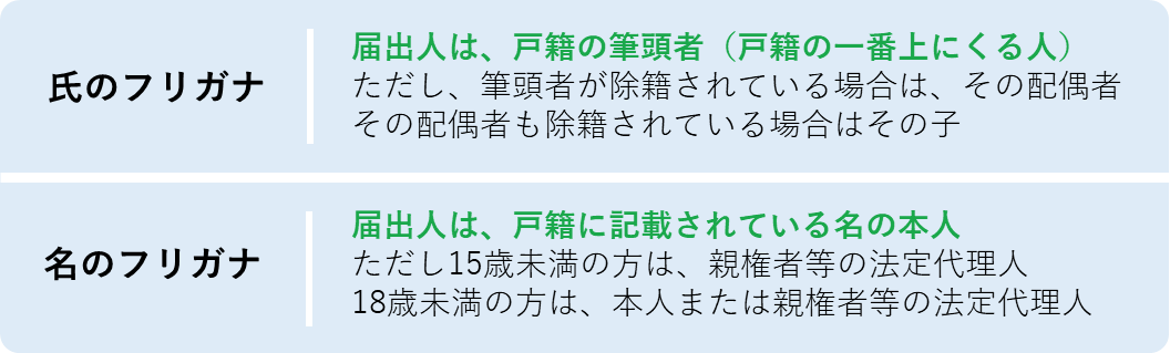 氏名のフリガナの届出