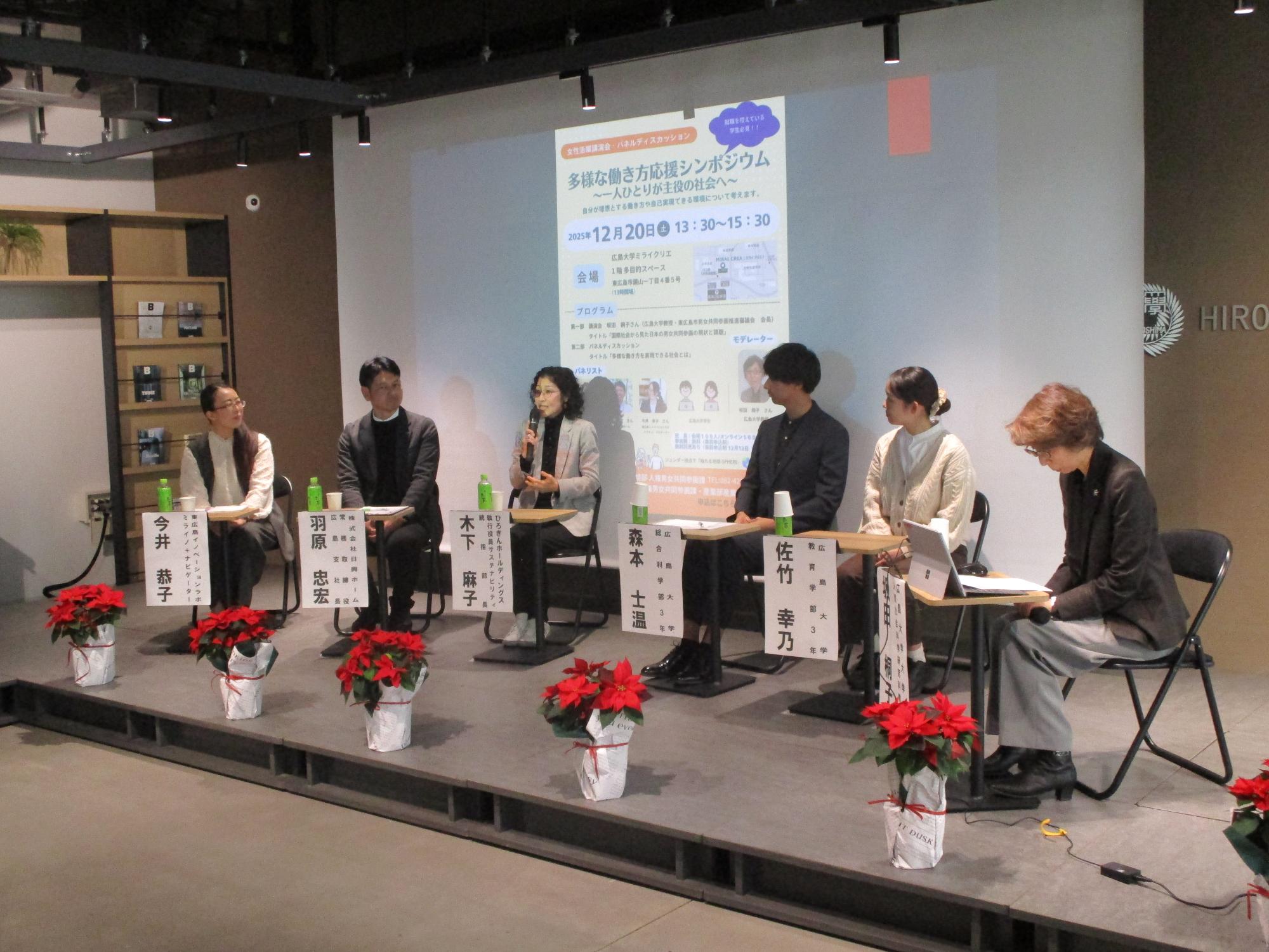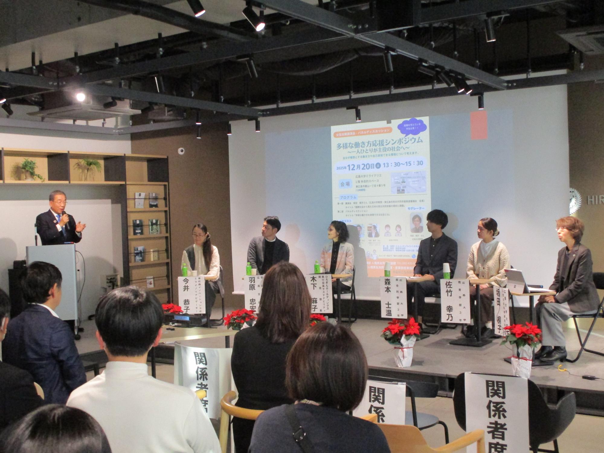 12月20日(土曜日)、広島大学ミライクリエで「多様な働き方応援シンポジウム~一人ひとりが主役の社会へ~」を開催しました。本シンポジウムは広島大学の後援を受けて実施しました。
