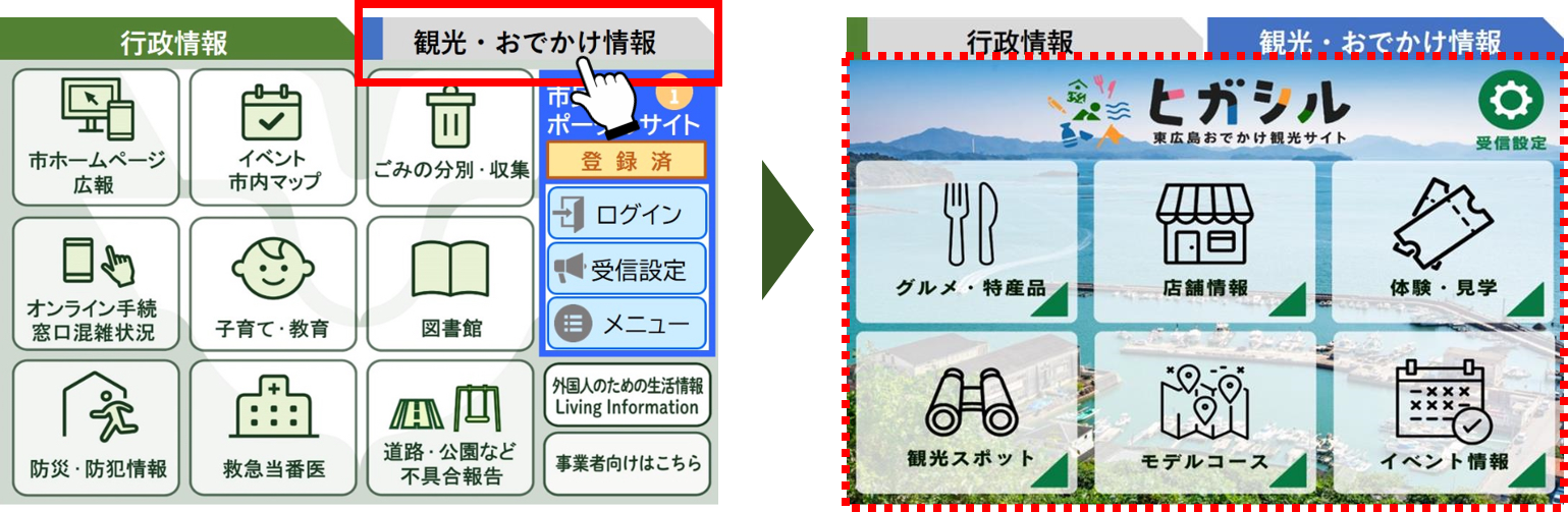 東広島市の観光情報についてまとめたメニューから、各種情報が確認できます。